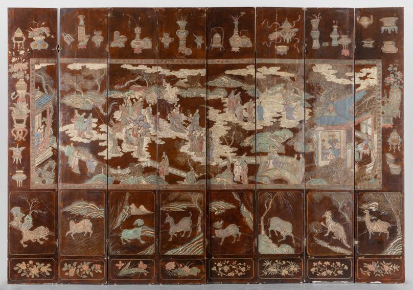 a otto ante in lacca coromandel, Cina fine sec.XIX/XX h.cm.320x230 aperto € 1.500/1.700