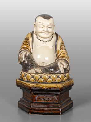 Buddha in porcellana policroma, Cina inizi sec.XX h. cm.19
