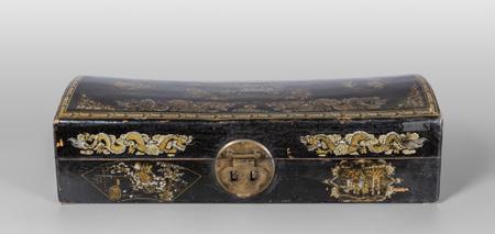 Piccolo armadio in lacca nera decorato con figure orientali, Cina I metà sec.XX cm. 90x54 h. 138
