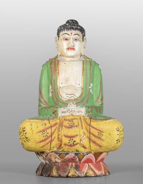 Buddha, scultura in legno policromo, Cina cm. 48x32 h. 76
