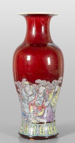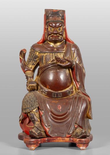 Dignitario, scultura in legno laccato rosso, Cina inizi sec.XIX