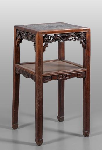 Tavolino in legno duro con piano in marmo, Cina sec.XX cm. 44x44 h. 80