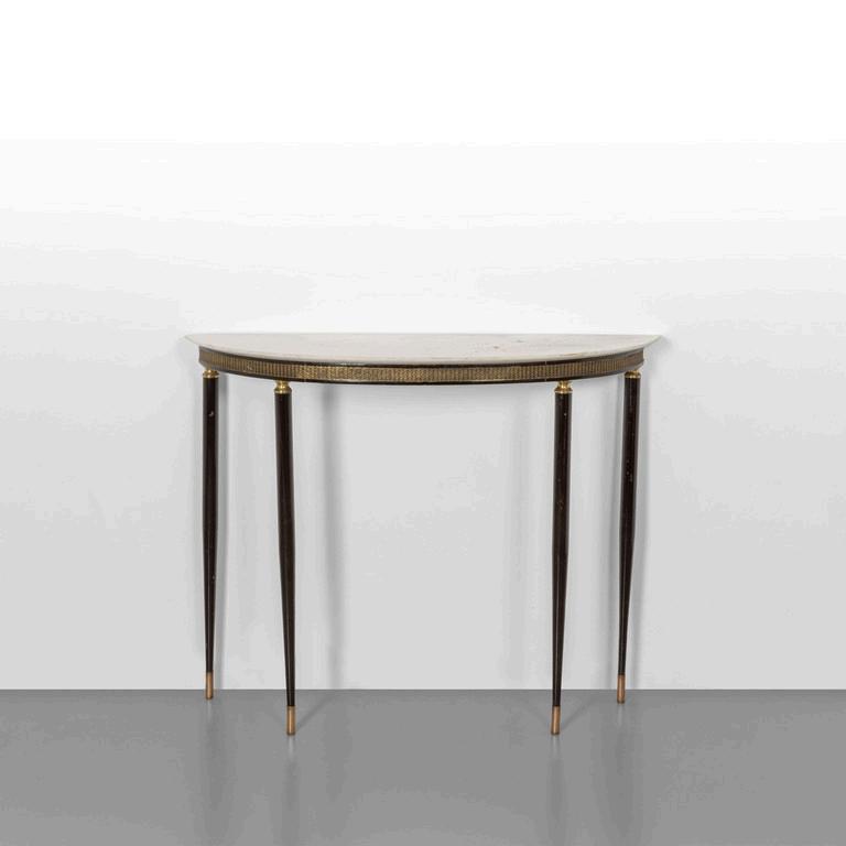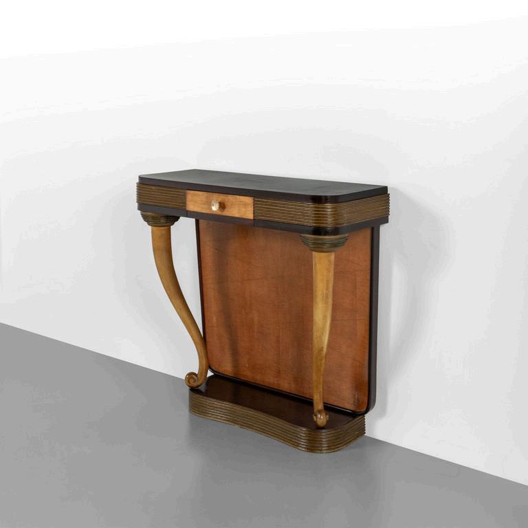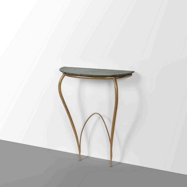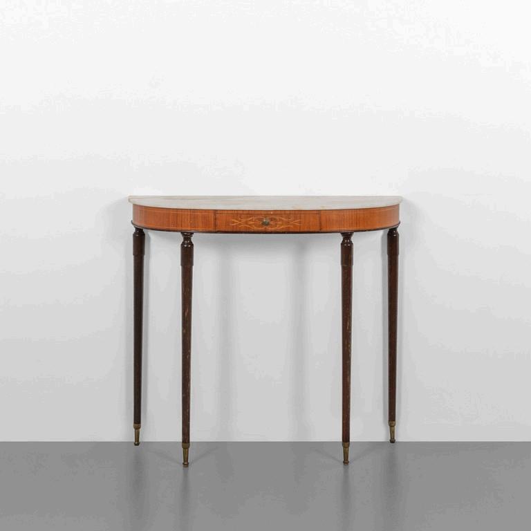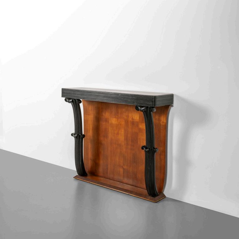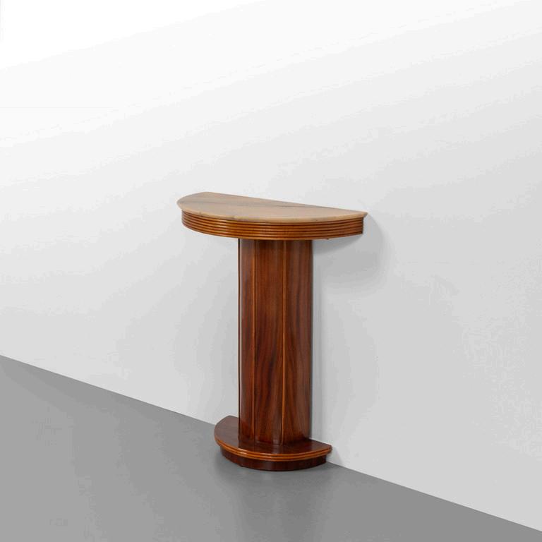 UNA CONSOLE anni '30. Legno di mogano marmo rosa del Portogallo Cm 86 (h) x 70 (l) x 35 (p).