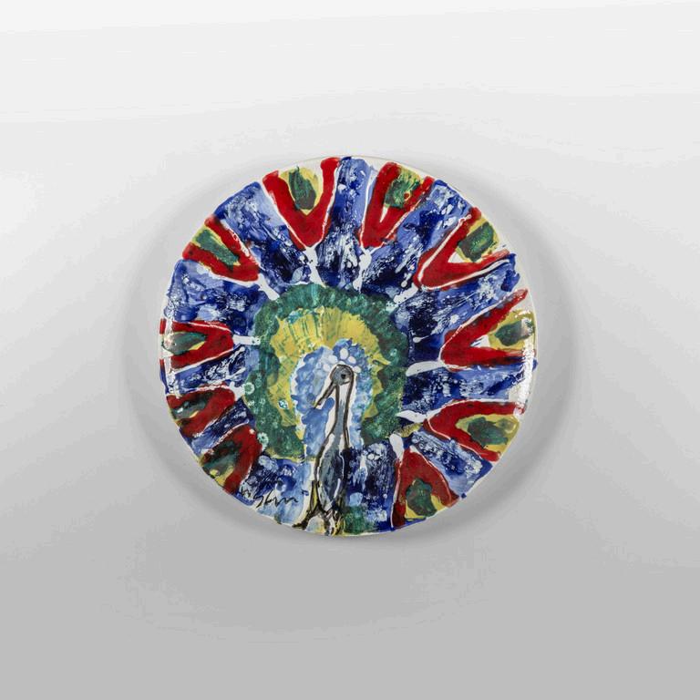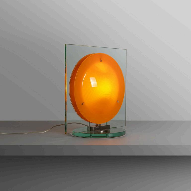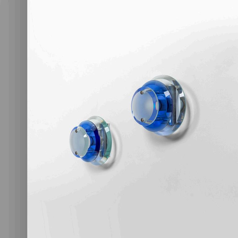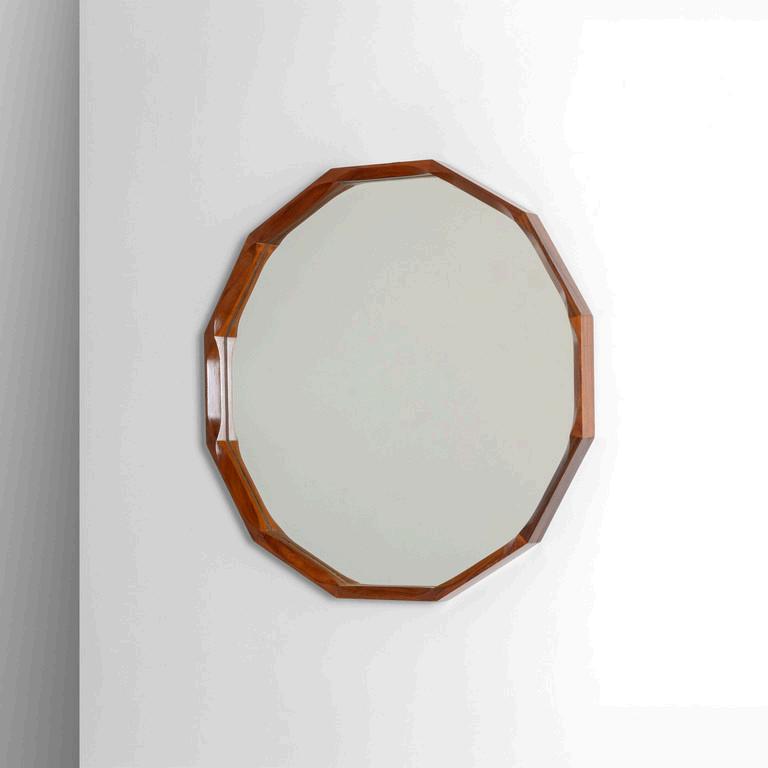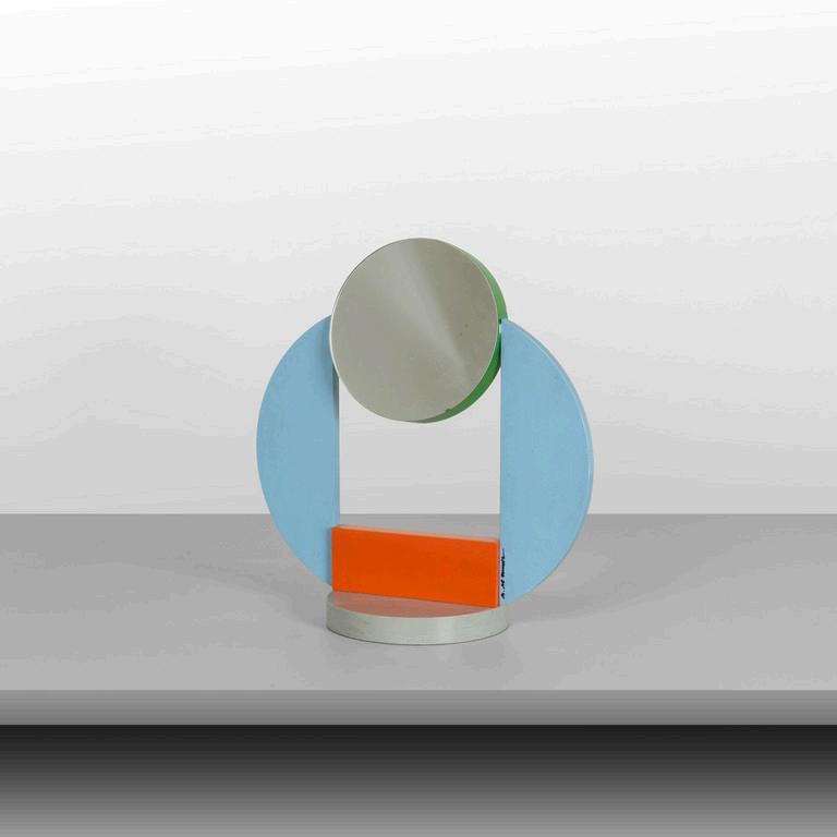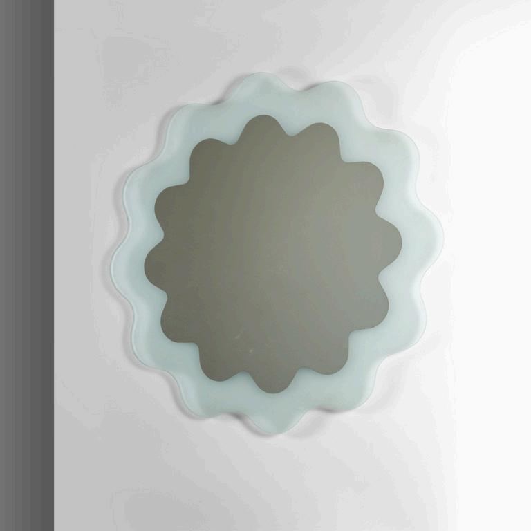 NANDA VIGO GLAS ITALIA 2022. Uno specchio da parete della serie 'Andromeda' design 1974. Lastra di cristallo colorato con parti specchiate. Cm 60 (diam.).