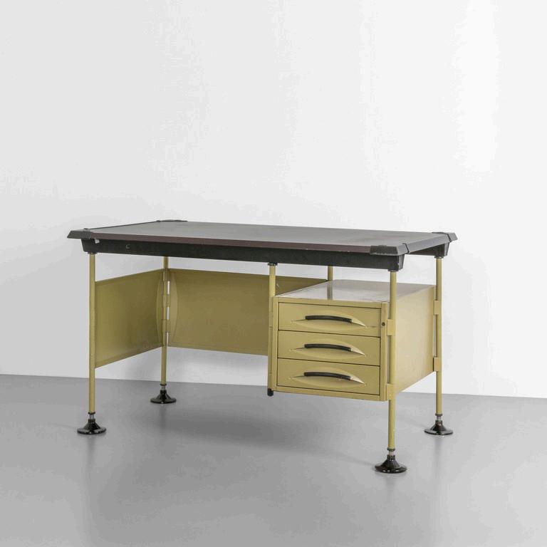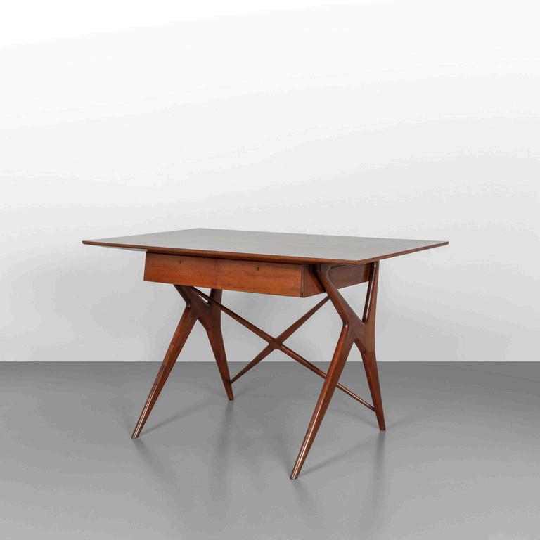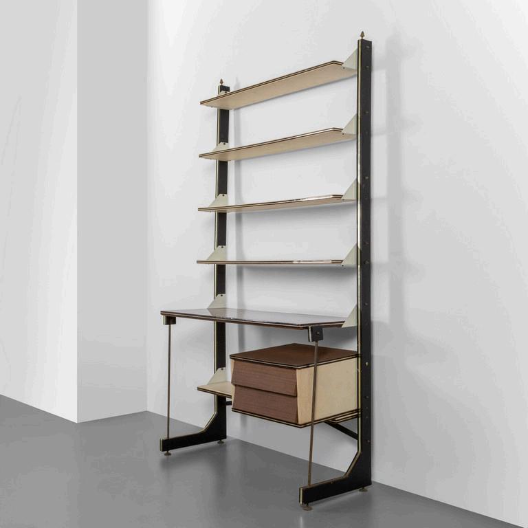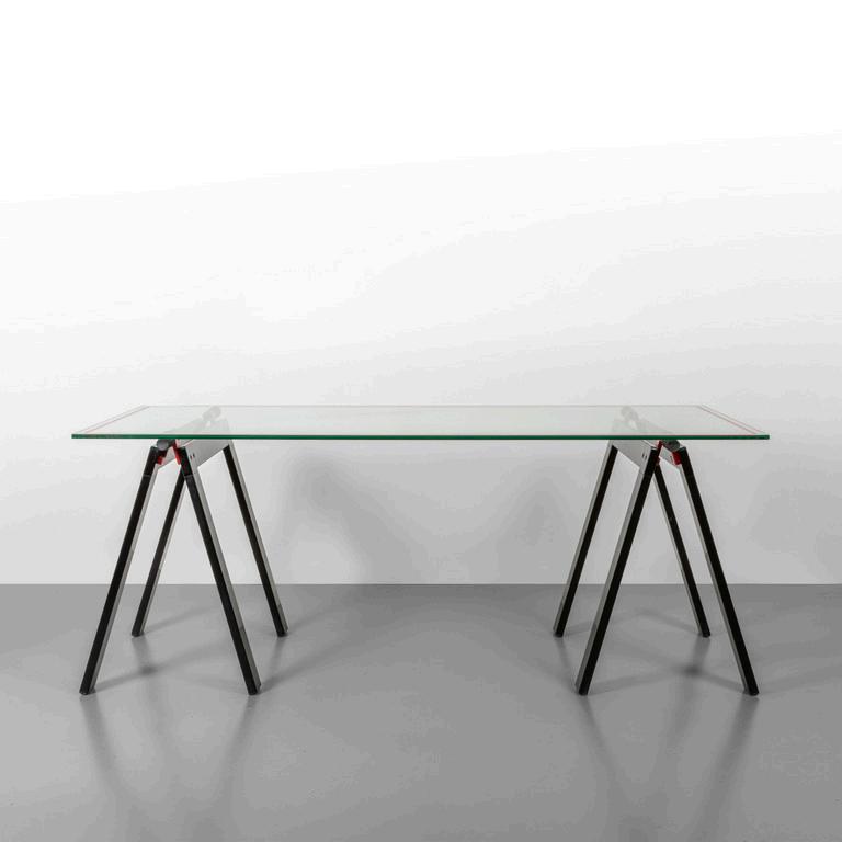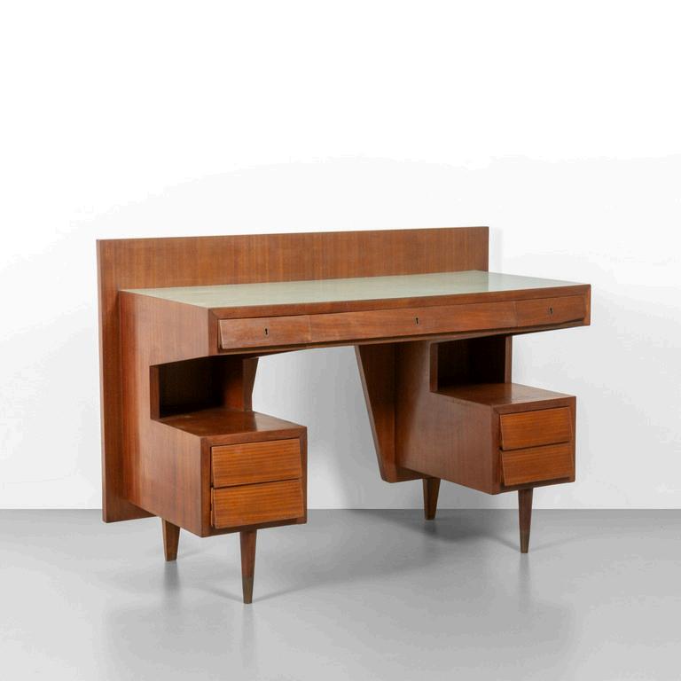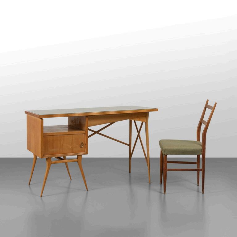 UNA SCRIVANIA anni '30. Legno ebanizzato radica di noce vetro retrodipinto. Cm 79 (h) x 107 (l) x 60 (p).