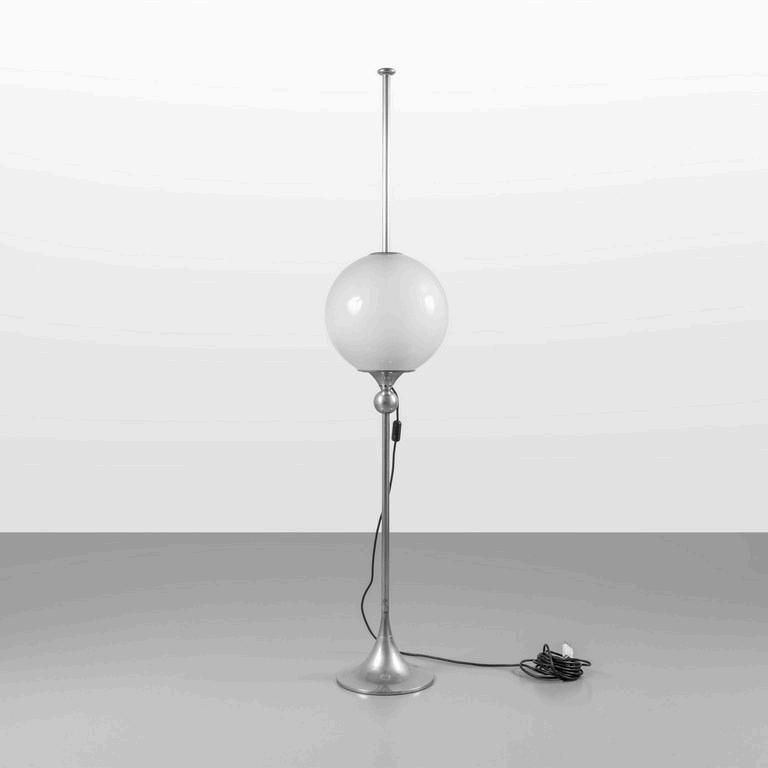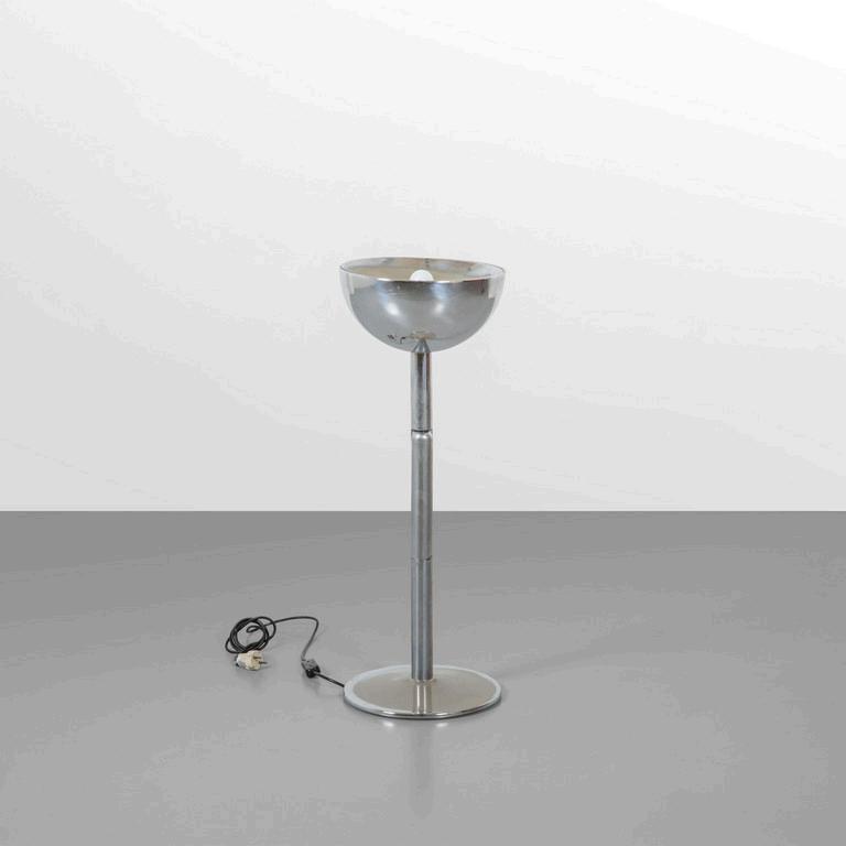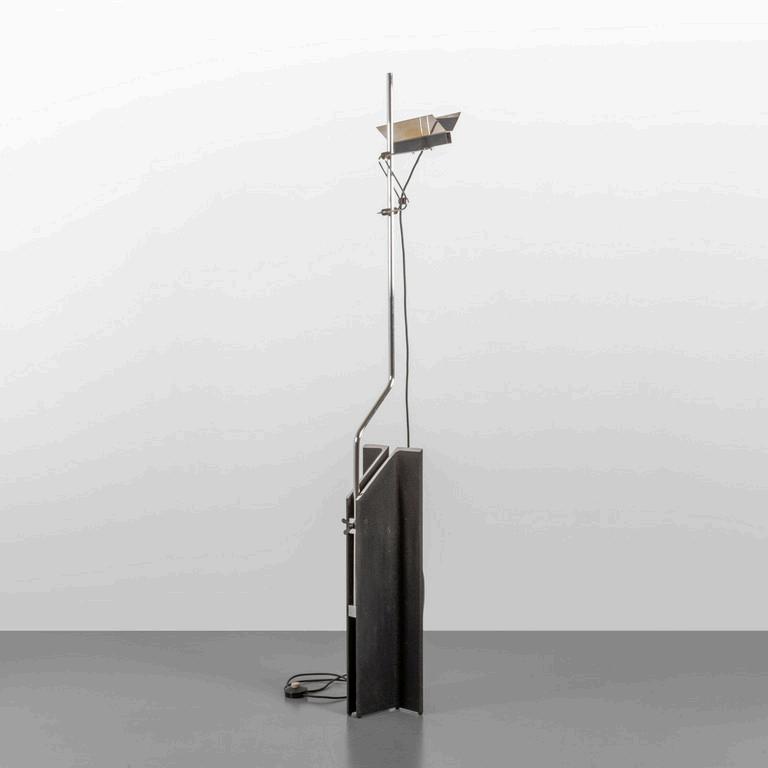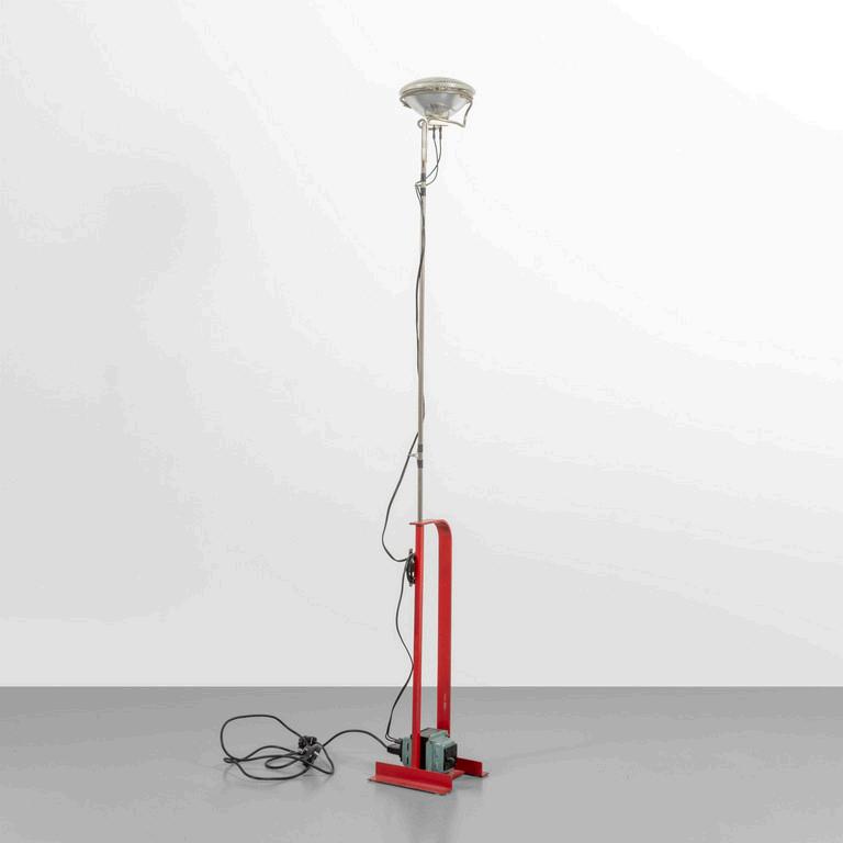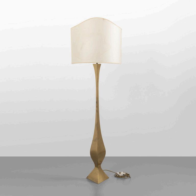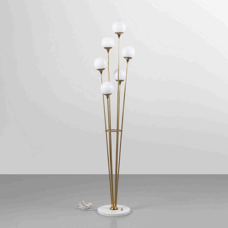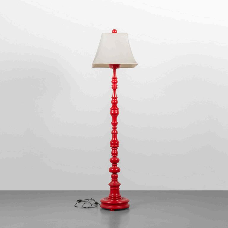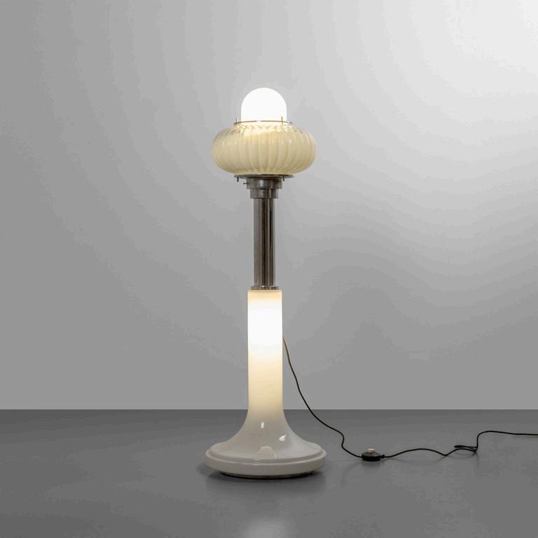 UNA LAMPADA DA TERRA anni '30. Legno laccato legno ebanizzato rame paralume in plastica (alcune rotture). Cm 182 (h).