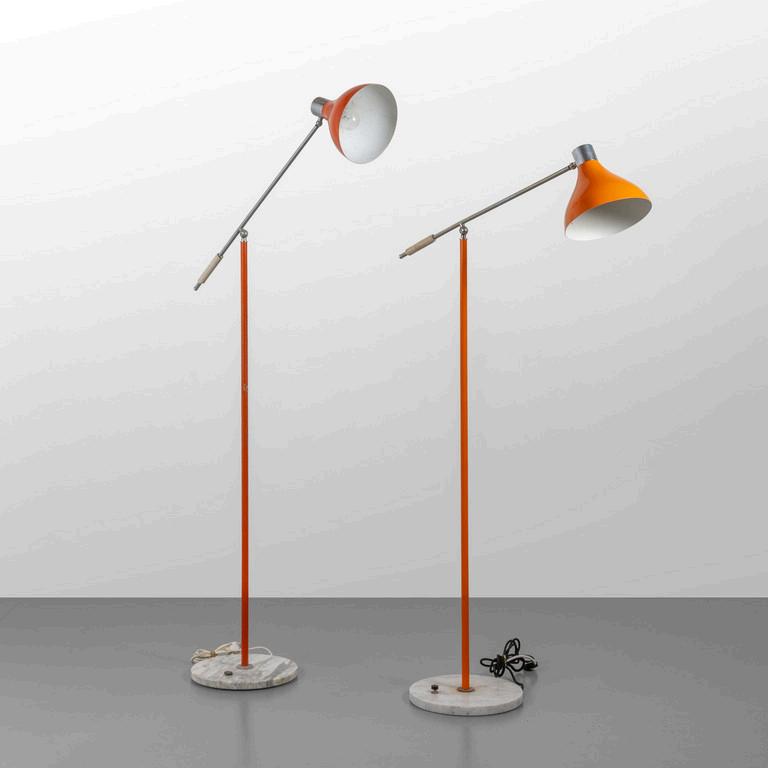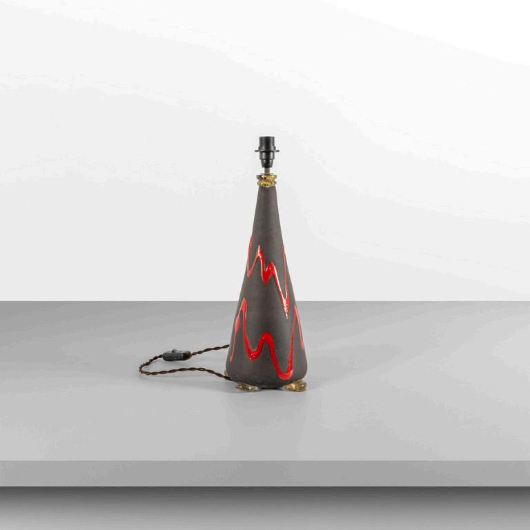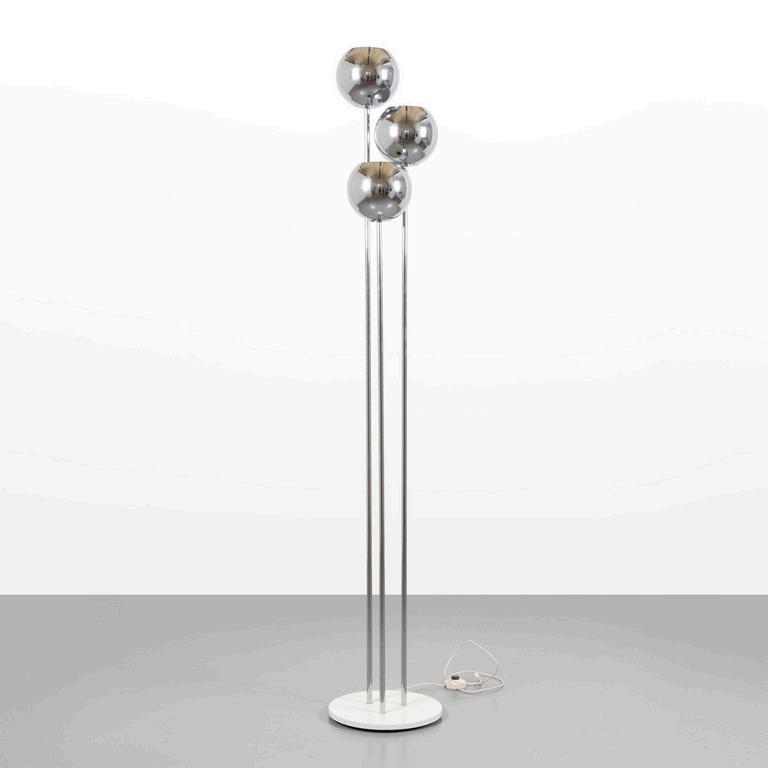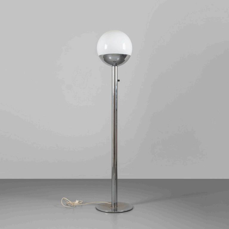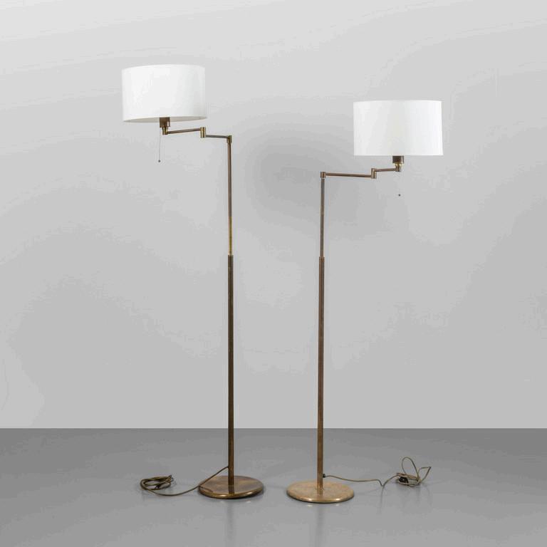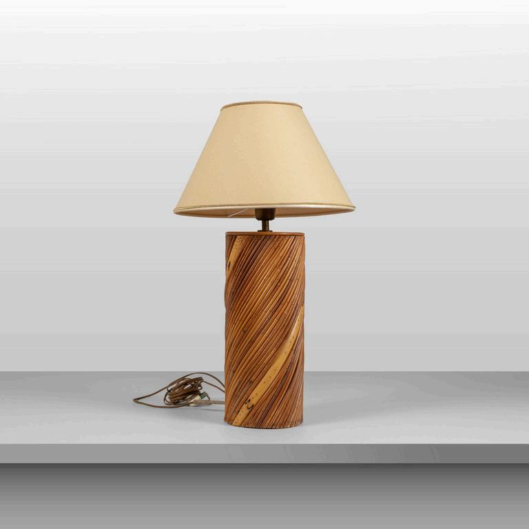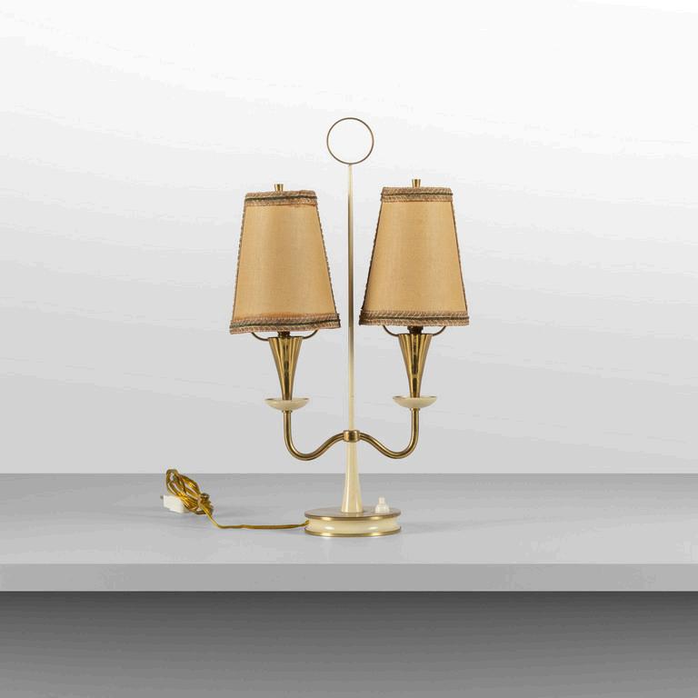 UNA LAMPADA DA TERRA anni '30. Legno laccato legno ebanizzato rame paralume in plastica (alcune rotture). Cm 182 (h).