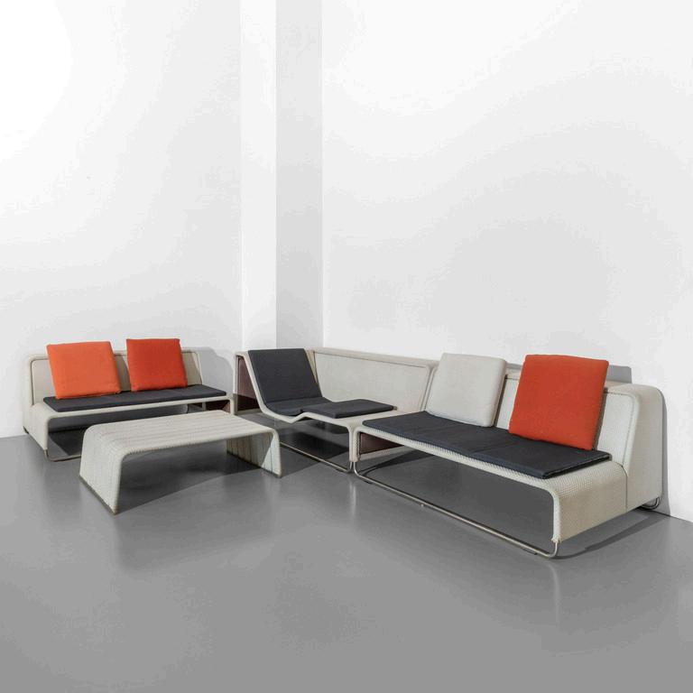 PATRICIA URQUIOLA B&B ITALIA 2010. Un divano della serie componibile 'Bend'. Struttura in acciaio imbottiture rivestite in pelle. Cm 60 (h) x 215 (l) x 110 (p).