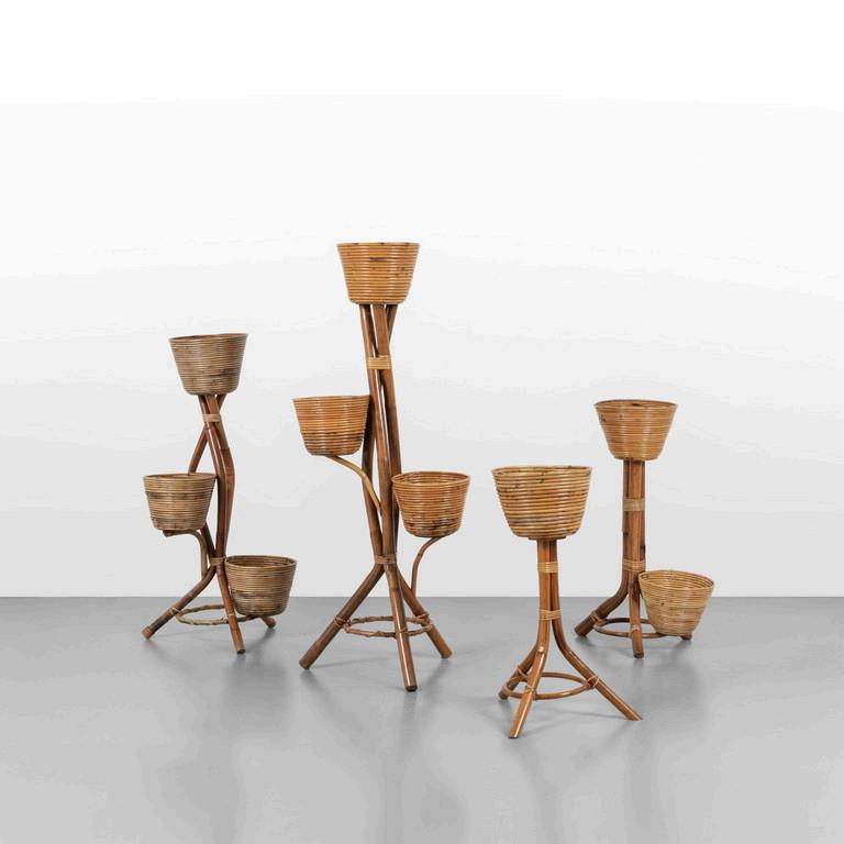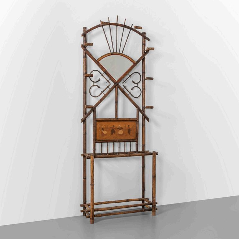 UN APPENDIABITI DA INGRESSO anni '20. Bambu' giunco cristallo argentato. Cm 205 (h) x 75 (l) x 30 (p).