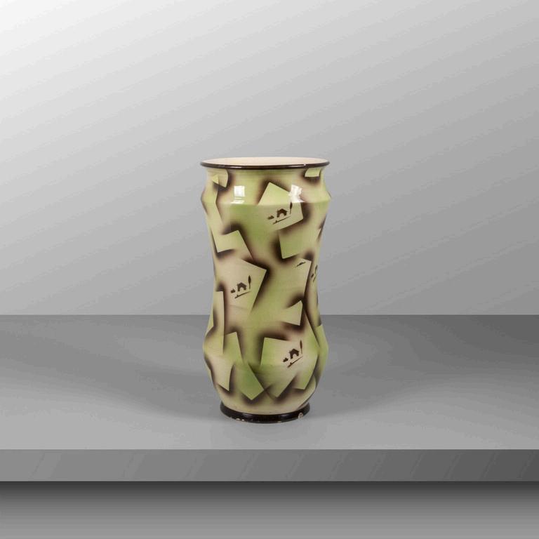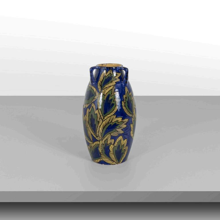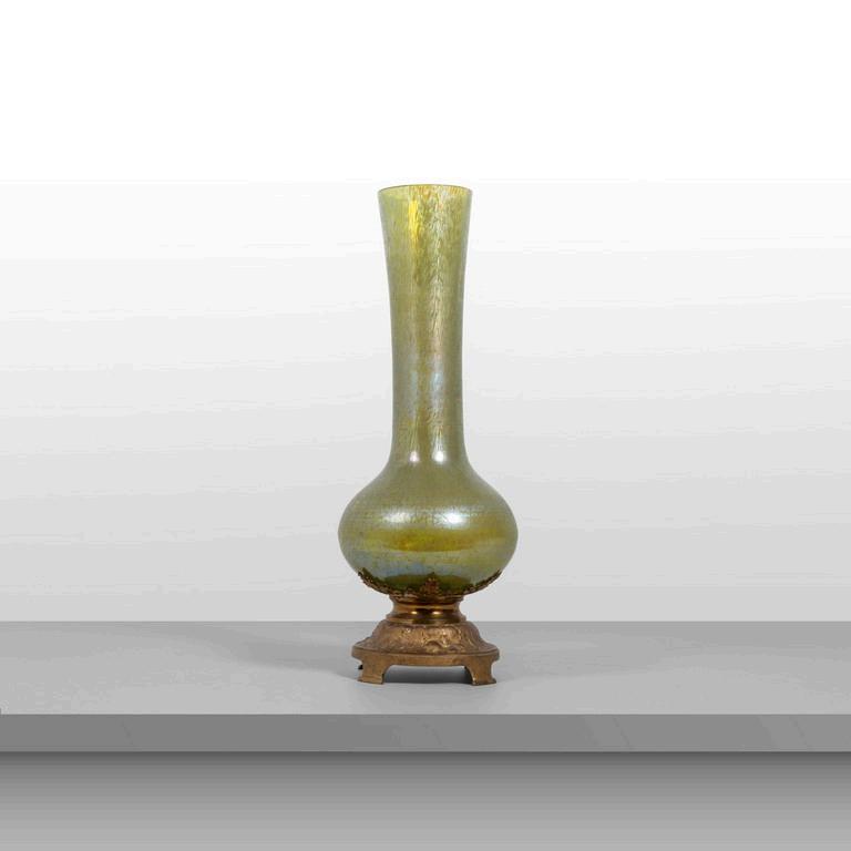 JOHANN LOETZ anni '20. Un vaso. Vetro con decoro 'Papillon' ottone. Cm 64 (h).
