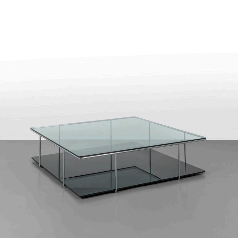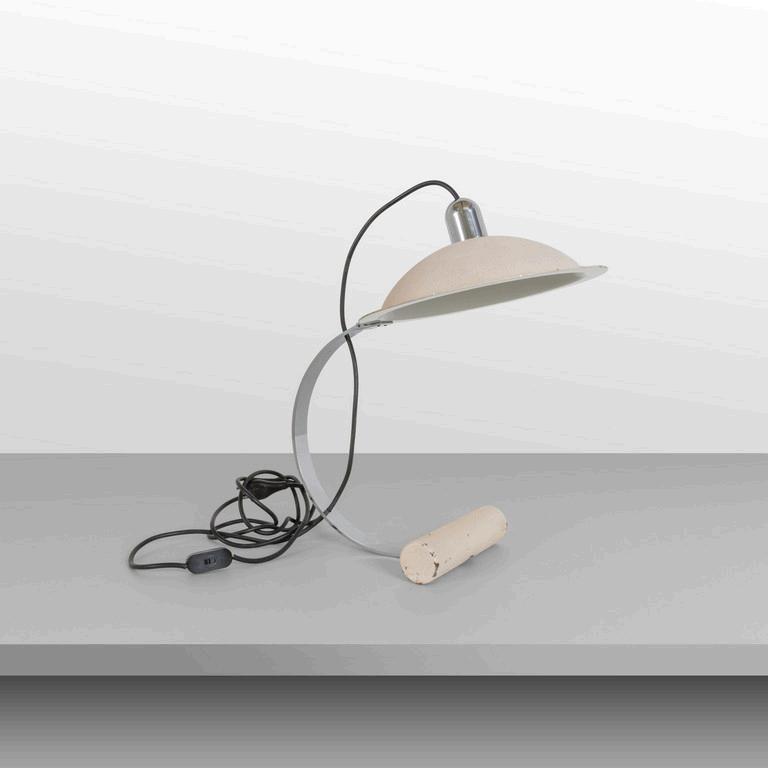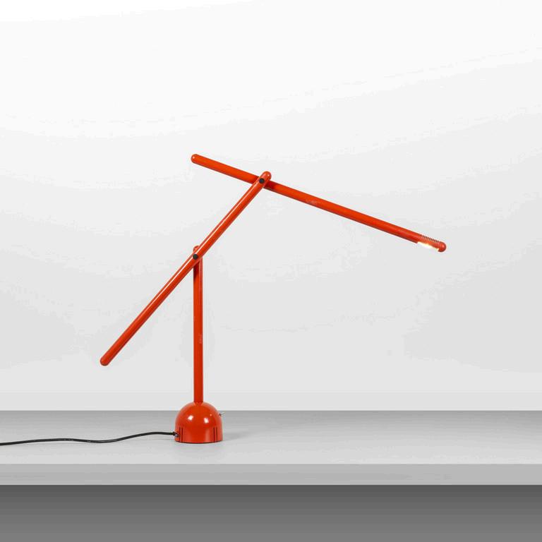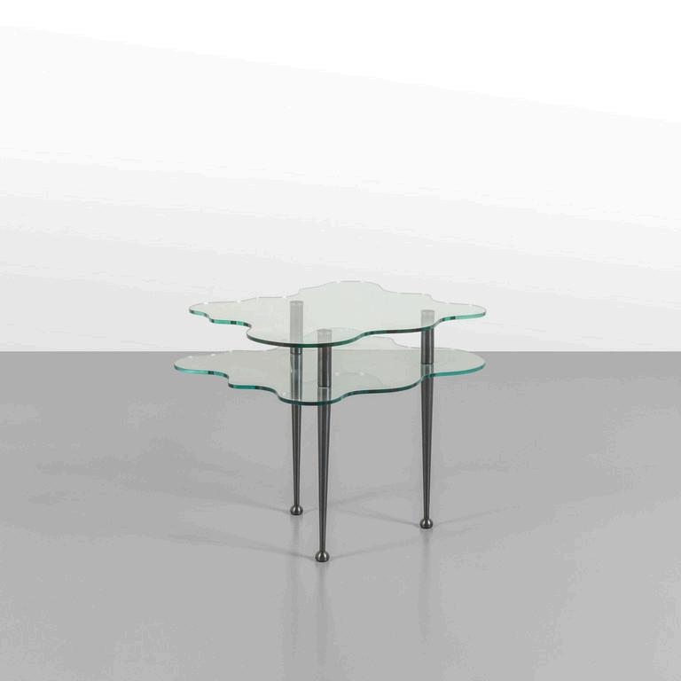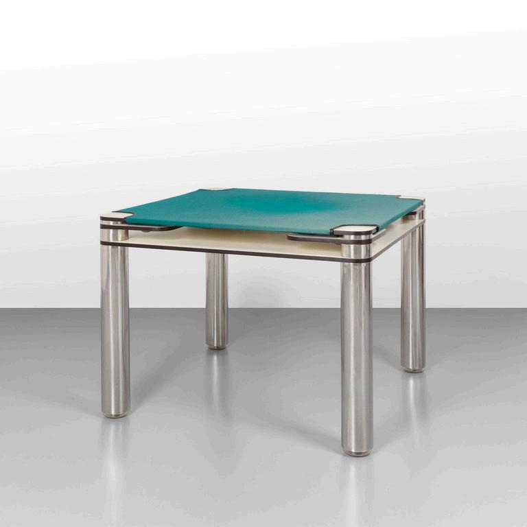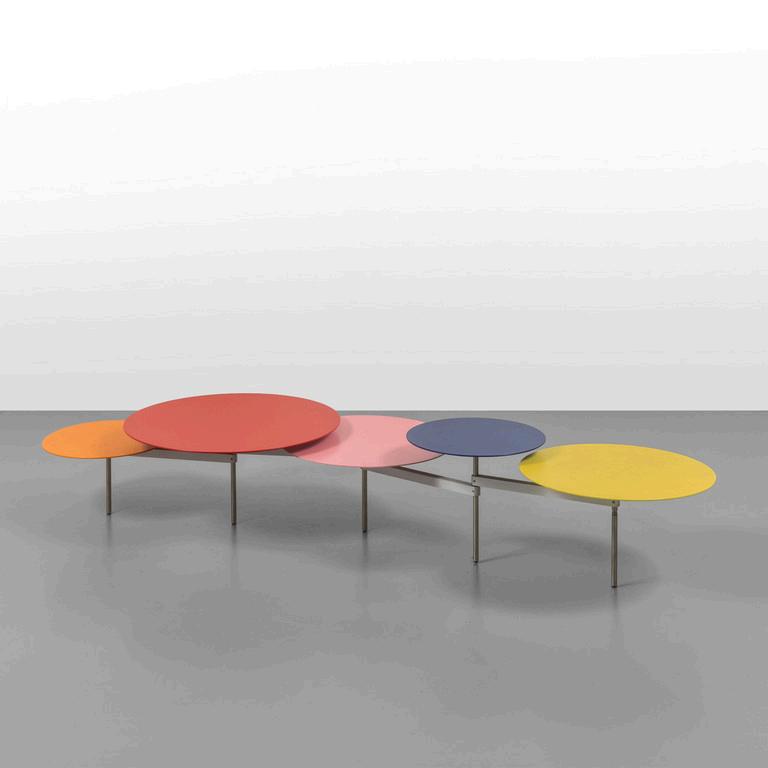 CARLO CONTIN MERITALIA 2006 Un tavolino 'Snake'. Piani in alluminio verniciato collegati da una struttura in alluminio snodabile in configurazioni diverse. Cm 24 (h) x 150 (lungh.max) x 50 (diam. max).