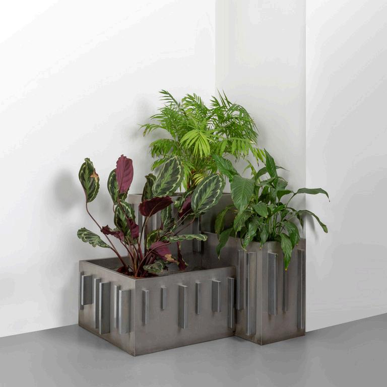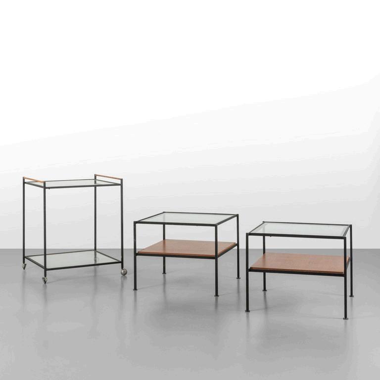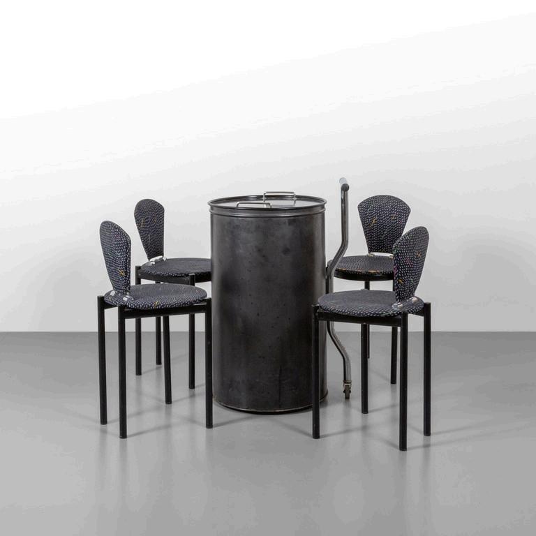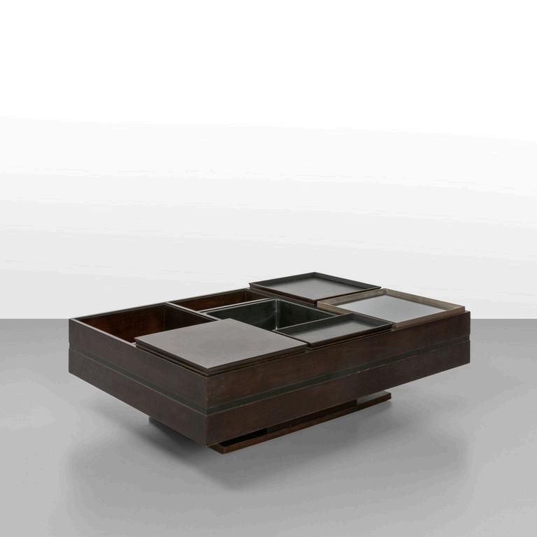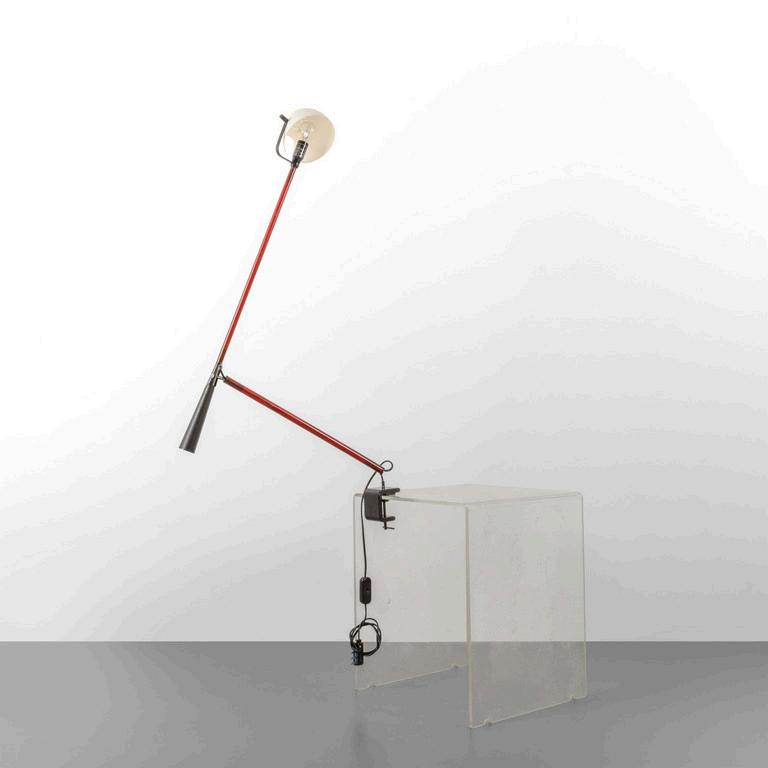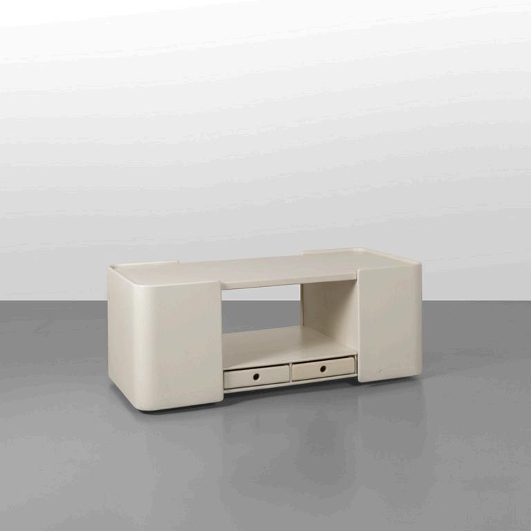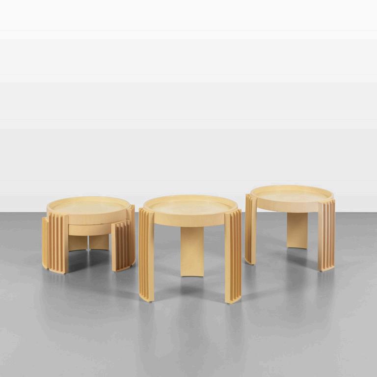 CARLO CONTIN MERITALIA 2006 Un tavolino 'Snake'. Piani in alluminio verniciato collegati da una struttura in alluminio snodabile in configurazioni diverse. Cm 24 (h) x 150 (lungh.max) x 50 (diam. max).
