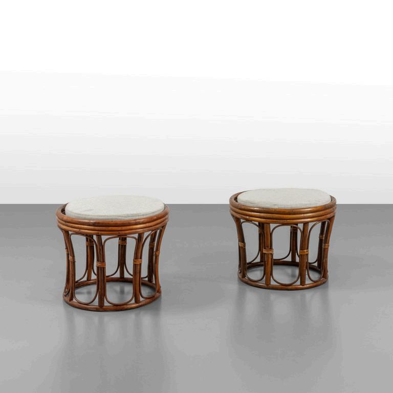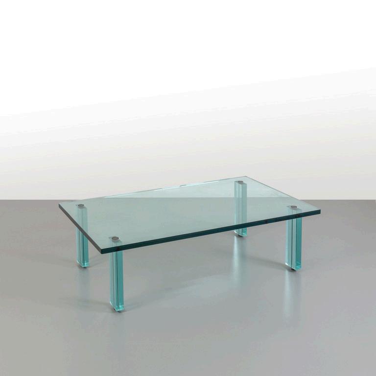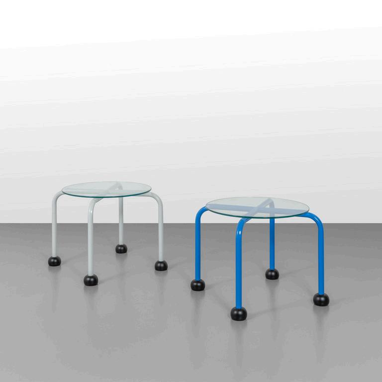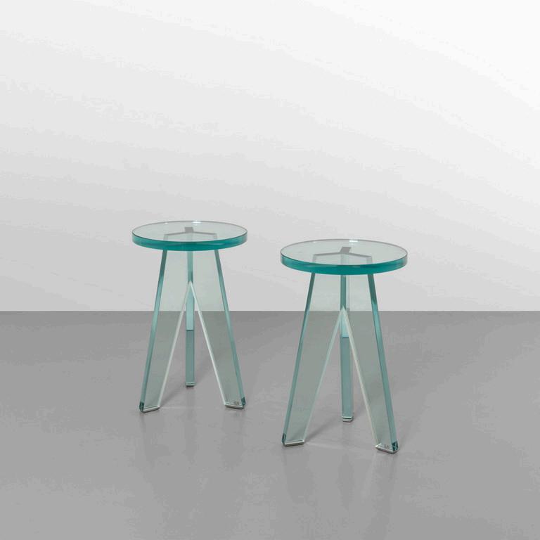 PHILIPPE STARCK GLAS ITALIA anni 2024. Due sgabelli-piccoli tavolini della serie 'Crystal Stool'. Cristallo temperato. Cm 48 (h) x 32 (diam.).