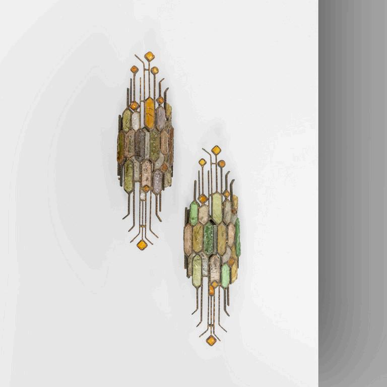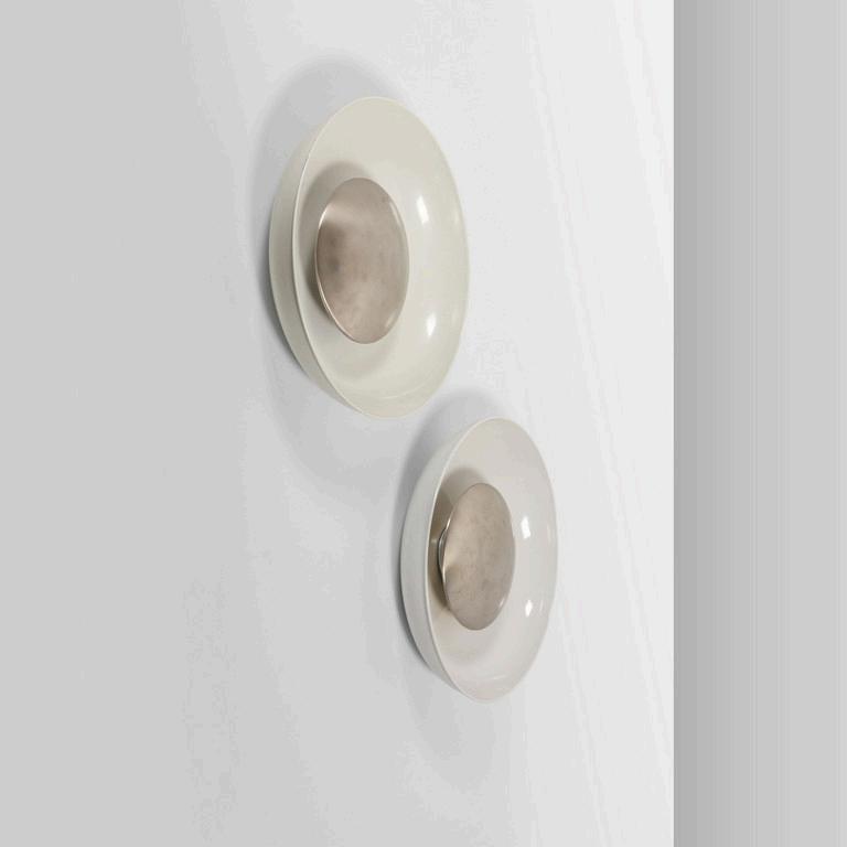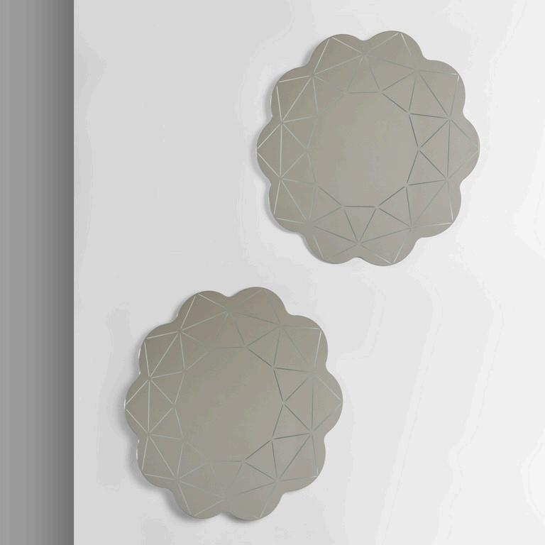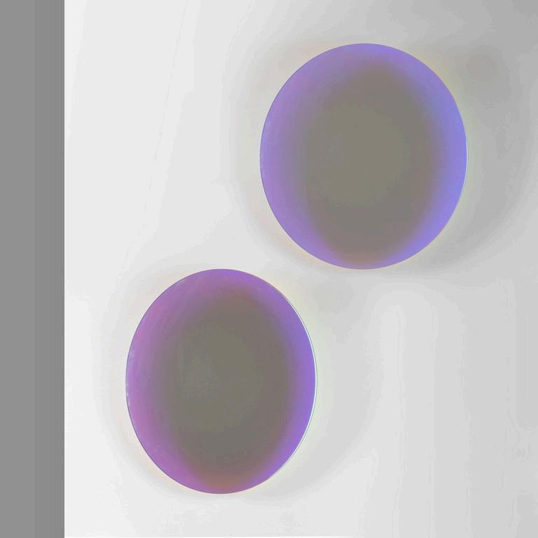PATRICIA URQUIOLA GLAS ITALIA 2015. Due specchi da parete della collezione 'Shimmer'. Lastre di cristallo stratificato e incollato con finitura multicromatica cangiante. Cm 60 (diam.).