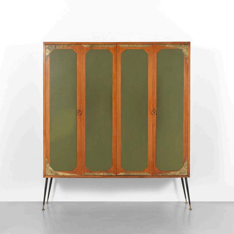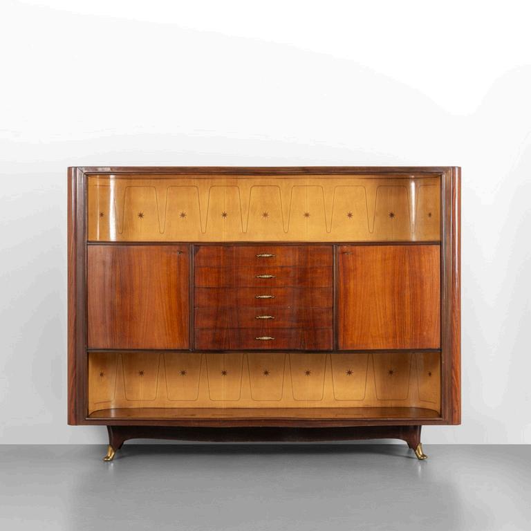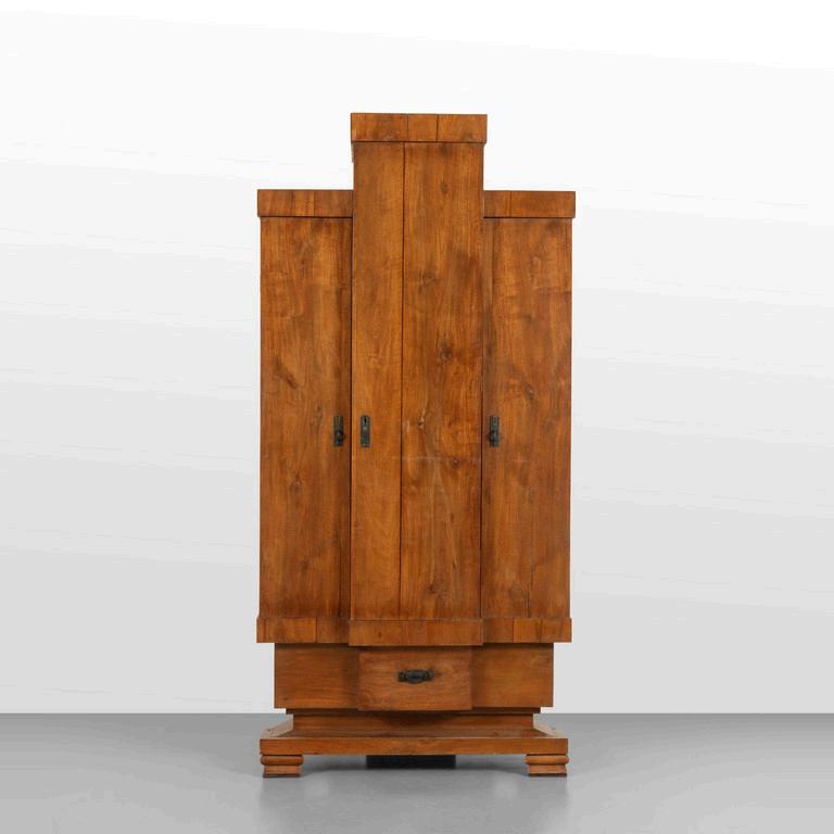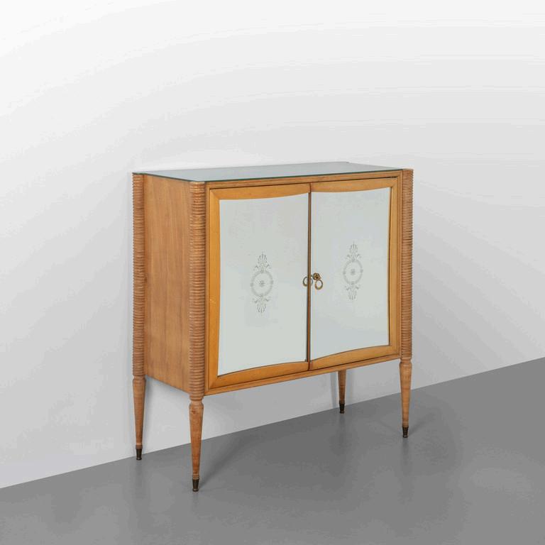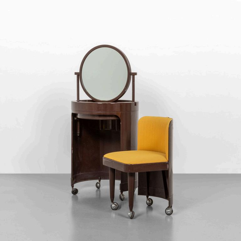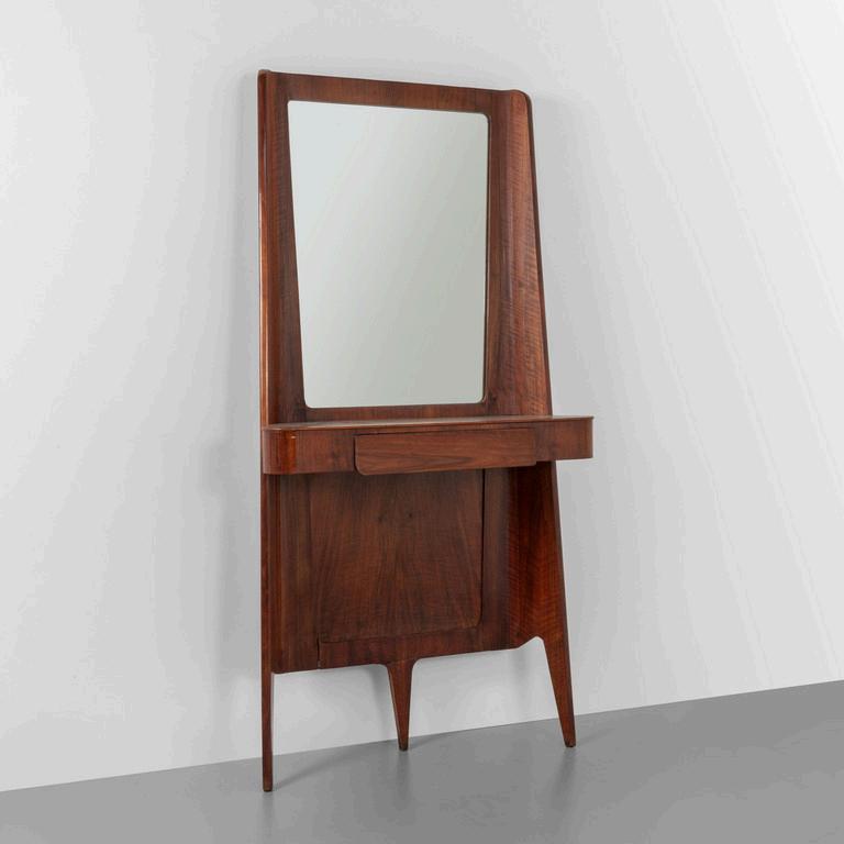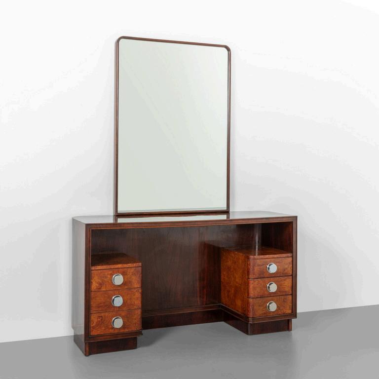 UNA TOILETTE anni '30. Legno di mogano radica di tuia ottone cromato cristallo argentato. Cm 175 (h) x 130 (l) x 40 (p).