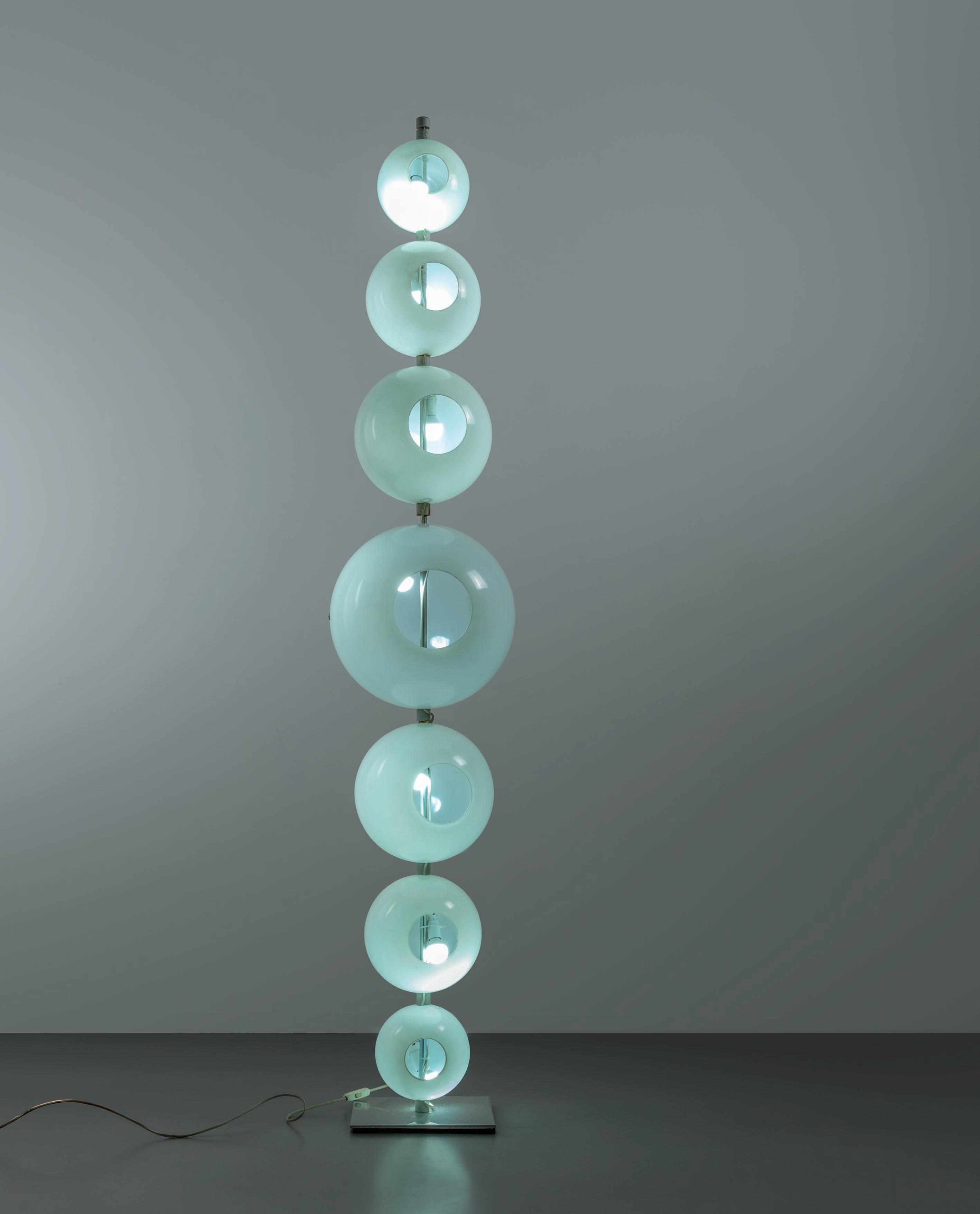 PATRICIA URQUIOLA GLAS ITALIA 2025. Un vaso della serie 'Opalia'. Vetro a bolle realizzato con sfridi di cristallo unito ad additivi lastre di vetro float. Etichetta della Manifattura. Cm 43 (h) x 25 (l) x 11 (p).
