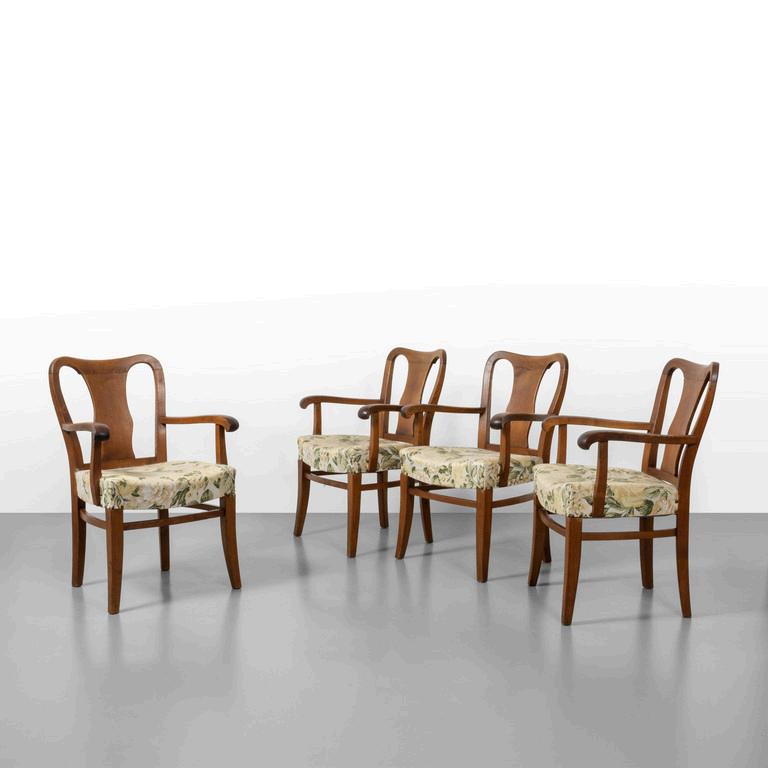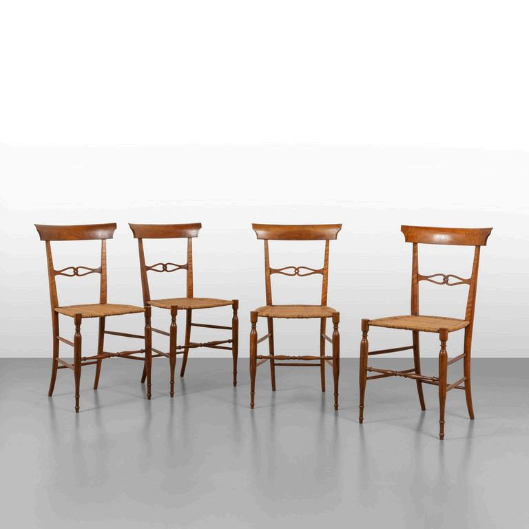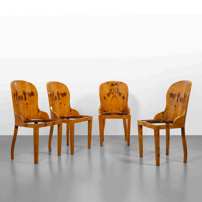 QUATTRO SEDIE anni '30. Radica di noce. Sedili mancanti. Cm 100 (h) x 50 x 55 (p).