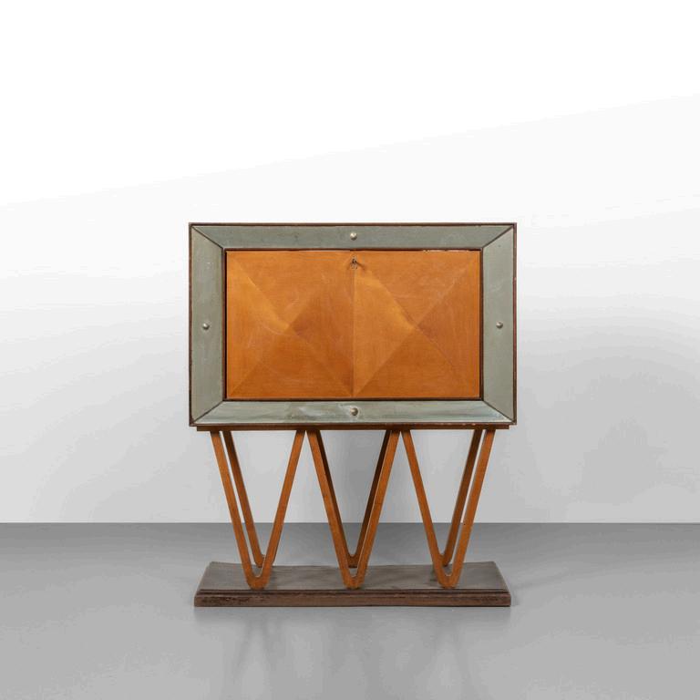 UN PICCOLO MOBILE inizi '900. Legno decorato rame. Cm 65 (h)x 50 (l) x 31 (p).