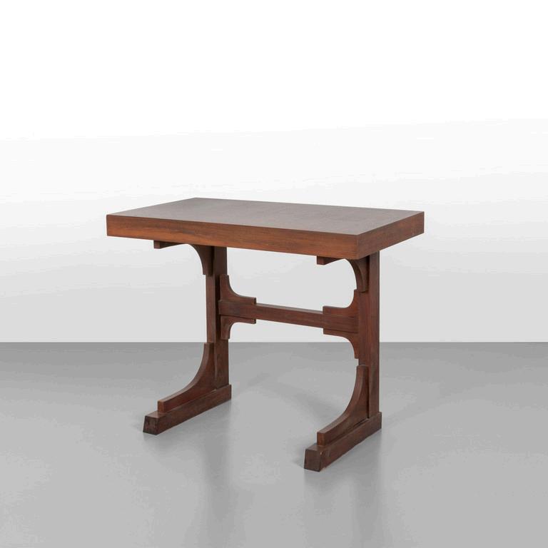 UN TAVOLINO IN STILE LIBERTY. Varie essenze di legno. Cm 60 (h)x 73 x 49.