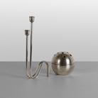 3026 LINO SABATTINI, CHRISTOFLE, anni ‘40. Portafiori: cm 13 (diam.); candelabro: cm 31 (h).