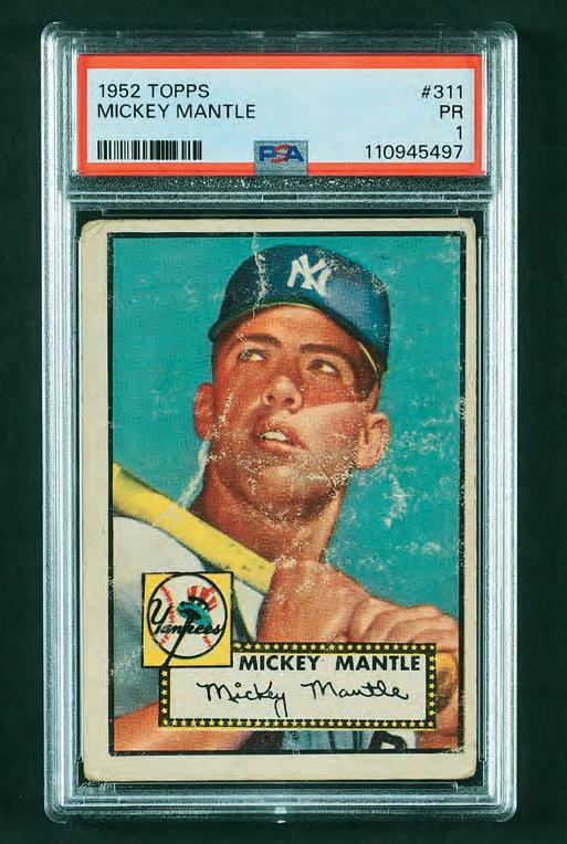 One of the Mantle cards sold within estimate for $38,340 and was the auction’s overall top lot. The card was recently graded by PSA and received a lowly grade of 1 Poor. It had rounded corners and wear to the field, but was still a musthave card in the 1952 Topps baseball card set, widely regarded as one of the most significant sets in the world of baseball card collecting.