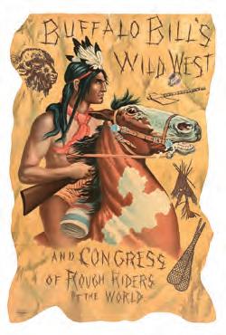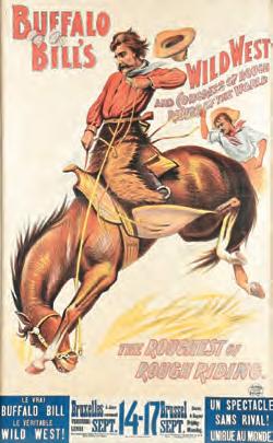 Buffalo Bill actually made several appearances in the sale. A large-format announcement poster for Buffalo Bill and his Rough Riders in Belgium, featuring a dynamic bucking bronco and cowboy in woolly chaps, rang up $20,910.