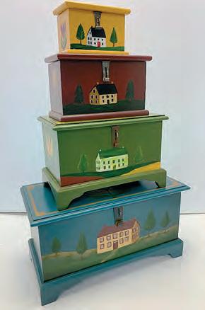 Artisans for the Early American Craft Fair include Bob Schultz, Shaker Boxes; CountryBrooms, Broom Making; Daniel Strawser Jr., Woodcarving and Tramp Art; Designs by Grace, Canvas Floorcloths and Table Accessories; L.T. Short Folk Art, Fraktur and Decorative Painting; Oxenford’s Country Crafts & Things, Tole and Decorative Painting/Tinsmithing/Woodworking; River Rat Pottery, Redware; The Springerle House, Springerle Cookies, Handpainted