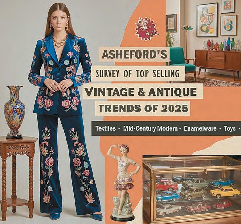 For those wanting to view the complete line-up from this year’s survey of best-selling antique and vintage categories from 2025, including this year’s winners (and some surprising newcomers), you can find all the results on the institute’s website at www.asheford. com/2025-survey-results. For additional information about the Asheford Institute and its distance-learning program on antiques, vintage, appraising and the decorative arts, email info@asheford.com or call toll free at 877-444-4508.