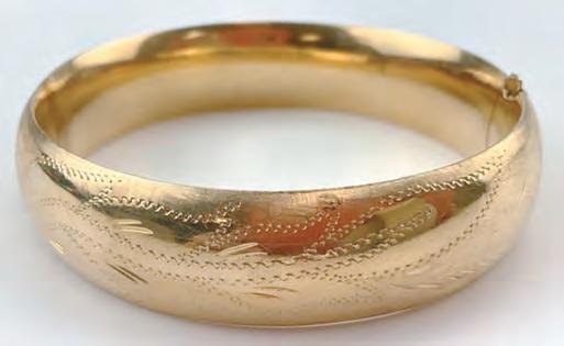A 14-karat Italian gold twist bracelet realized $4,484, and a 14-karat Italian gold rope bracelet and necklace, $4,248. A 18-karat gold diamond and onyx fleur-de-lis “flower of the lily” locket, a symbol having originated from medieval heraldry,