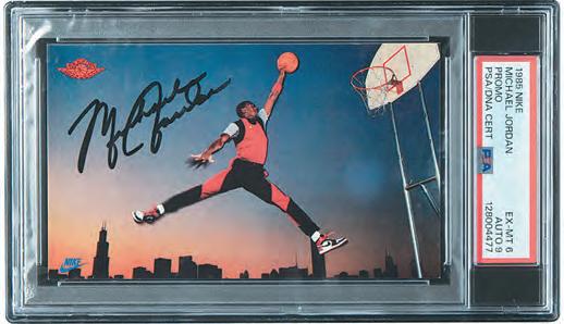 A signed 1985 Nike Michael Jordan (Promo) PSA EX-MT 6, PSA/ DNA Auto 9, scored a winning bid of $106,750, a record for the card; another example with an Auto 8 grade (not pictured) sold for $59,780.