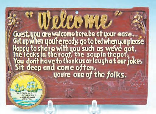 This “Welcome” plaque comes all the way from Jamestown, Va.