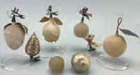 Brenda. This comprehensive Christmas cache includes Santas, nodders, reindeer, sleighs, belsnickles, ornaments and trees, plus skittles sets, Heubach bisque candy containers, and artful terracotta items.