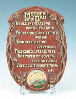 Billed as “just right for elegant living and gracious giving,” pressed wood plaques made great souvenirs. On many, there was a molded circular space for a decal heralding the specific vacation spot where it had been purchased. Inexpensive in their day, pressed wood wall plaques still remain a very affordable collectible. Plenty offer up their words of wisdom daily on eBay, with most averaging under $25. Collectors should appreciate that. After all, “a penny saved is a penny earned.”