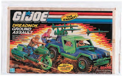 The top-selling “G.I. Joe” lot was a Hasbro Dreadnok Ground Assault Series 5 Vehicle with rockets and motorcycle with cannon, AFA Qualified 75 Q-EX+/NM, issued as a Sears exclusive in 1986, sold for $5,840 against an estimate of $1,000 to $2,000.