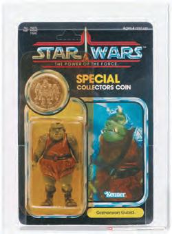 The “Star Wars: The Power of the Force” (1985) Gamorrean Guard 92 Back AFA 85 Y-NM+ action figure, with matching aluminum collector coin, only the second time Hake’s had ever auctioned such a figure in this high grade, sold within estimate for $8,695, a worldrecord price for an action figure of its type.