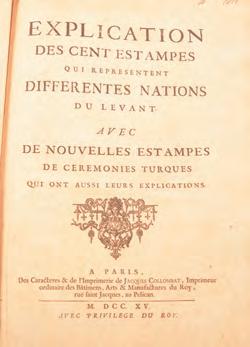 This is an extremely rare color plate book of the “Ottoman Leaders, Explication des Cent Estampes qui Representent Differentes Nations du Levant. Paris: Collombat,” 1715, folio. (6), (1)-26 pages, 96 (of 102) with hand-colored numbered engraved plates of various political, royal, and religious leaders of the Ottoman Empire, 26 of them with their royal belts, knives, etc. The contents are in very good condition, in early worn full leather and “Habits de Levant” on spine label.