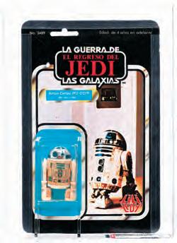 A Lily Ledy Spanish-language “Star Wars: Return of the Jedi/ La Guerra de las Galaxias: El Regreso de Jedi” (1983) Artoo-Detoo (R2-D2) 30 Back AFA 60 Ex action figure, in archival case with additional blister support, one of only five examples of its type graded by AFA, with only three in an AFA 60 grade and only one graded higher, sold above estimate for $11,420, a world-record price for an action figure of its type.