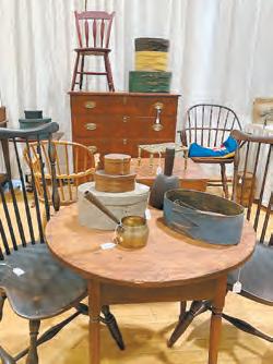 The majority of the more than 40 dealers are from Pennsylvania, with others coming from Ohio, New Jersey, New York, and Maine. Categories such as stoneware, redware, folk art, furniture, fraktur, paintings, quilts, early lighting, coverlets, butter prints, baskets, toys, painted smalls, historical china, and advertising were well represented. The layout of the show, utilizing the gym, cafeteria, and adjoining hallways, led shoppers through the attractive booths as they searched for that unique item to add to their collections.