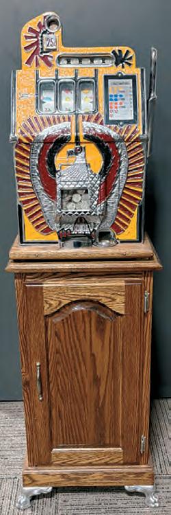 A professionally restored 25c War Eagle slot machine with a wood base looked great and was in fine working order. It sold for $4,400 against an estimate of $1,500 to $2,000.