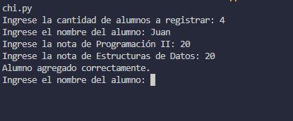 Como podemos ver nos pide que ingresemos el nombre del alumno y sus respectivas notas,y las mismas se han agregado de forma correcta.