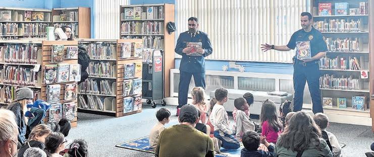 Glen Cove Police Officer Ted Karousos and Glen Cove Volunteer Fire Department Third Assistant Chief Carlos Cardenas stopped by the Glen Cove Public Library on Saturday, Jan. 7 to discuss safety tips with local children.