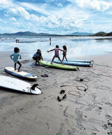 Kids practice surfing in Costa Rica.