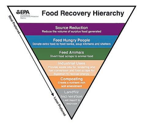 The town plan uses the US EPA Food recovery Hierarchy to prioritize solutions: #1 prevent, #2 donate, #3 divert. (Chart from the United States Environmental Protection Agency)