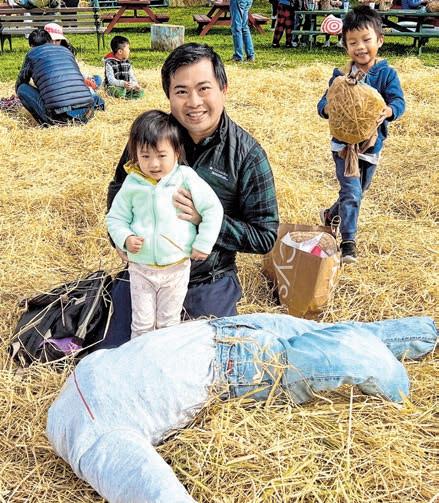 At the Scarecrow Festival, families brought old t-shirts, jeans, flannels and other accessories to decorate their scarecrow. Families stuffed their clothes with hay to create their own scarecrows.