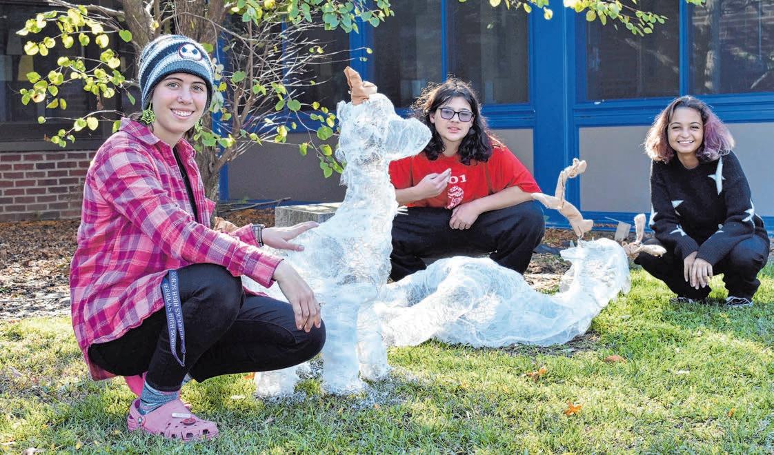 STAC is a multi-disciplinary arts program allowing students to develop skills and create work across multiple disciplines in the fine and performing arts, including art, music, dance, dra ma, filmmaking, and creative writing. Pictured are students with their ghost sculptures.