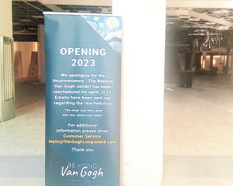A sign advises ticket-holders about the postponement of “Beyond Van Gogh: The Immersive Experience” at Samanea New York in Westbury.