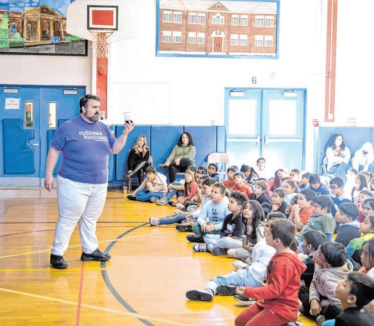 Landing Elementary School students recently learned about the importance of spreading acts of kindness during an assembly called Cultivating Kindness, presented by the ReesSpecht Life Foundation. Founder Richard Specht, who taught science for 16 years at Long Island schools, led students through interactive science demonstrations to teach them about chain reactions and how one, small act of kindness can create a huge impact.