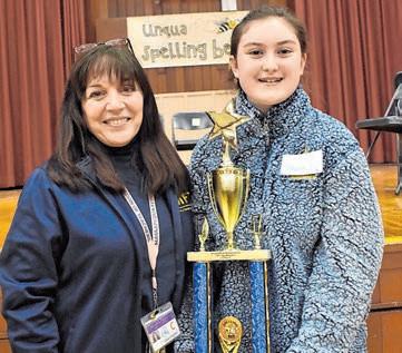 The Unqua spelling bee was held in January, featuring 16 participants who advanced from preliminary rounds in fourth and fifth-grade classes. After nine rounds, fifth-grader Sabrina Mannino remained as the only student who spelled every word correctly. She just needed to spell “bovines” right to be crowned as champion. She did, and the audience erupted in cheers.