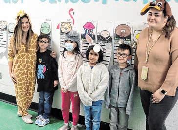 Hogan and Teresa Neri, at ends, dressed like wild animals alongside students, from left, Christian Benavides, Bonnie Zhu, Samaira Maitra and Sheldon Montero. (Contributed photos)