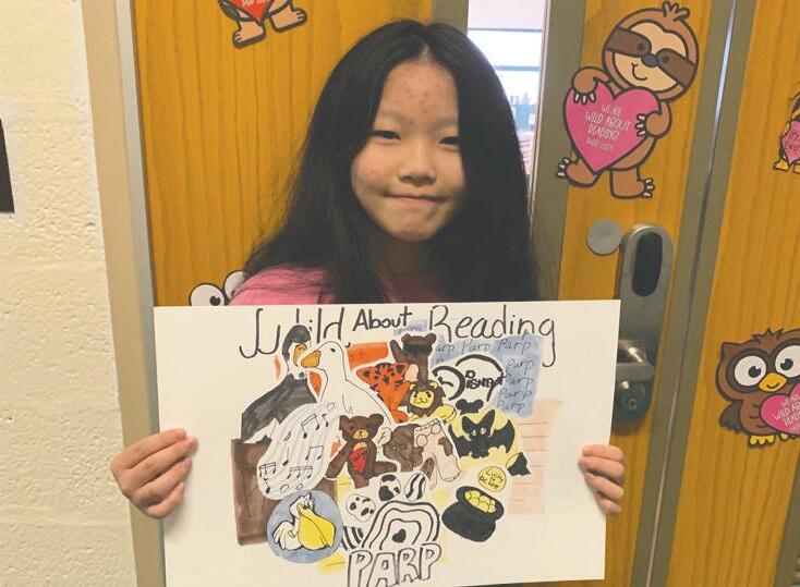 The theme for this year’s PARP, “Wild About Reading,” was reflected in posters created by students, including an artistic collage by fifth-grader Daphne Weng.